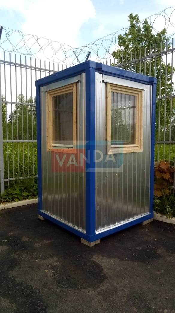 Мы сами изготавливаем пост охраны №1 (вариант 3), общей площадью 2.25 квадратных метров, имеющий наиболее доступную цену в нашем каталоге, и предлагающий широчайшие возможности для модернизаций. Простое решение с минимальными затратами.